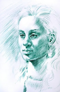 Gostei bastante de desenhar a Susana, tinha feições parecidas com esculturas gregas. Tinha feito também uma pintura dela que infelizmente perdi uma vez quando adormeci no comboio e levantei-me à pressa sem olhar para trás. Foi a pintura dela e mais outros desenhos - uma lástima!
